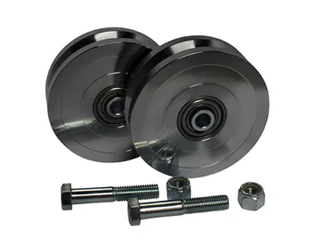 Pair of 4" Solid Machined V-Groove Wheels with Bolts and Lock Nuts