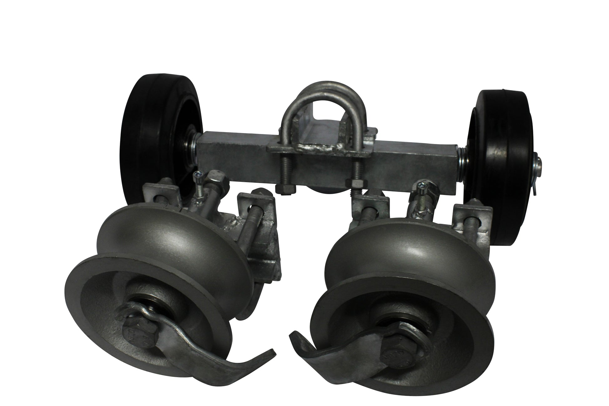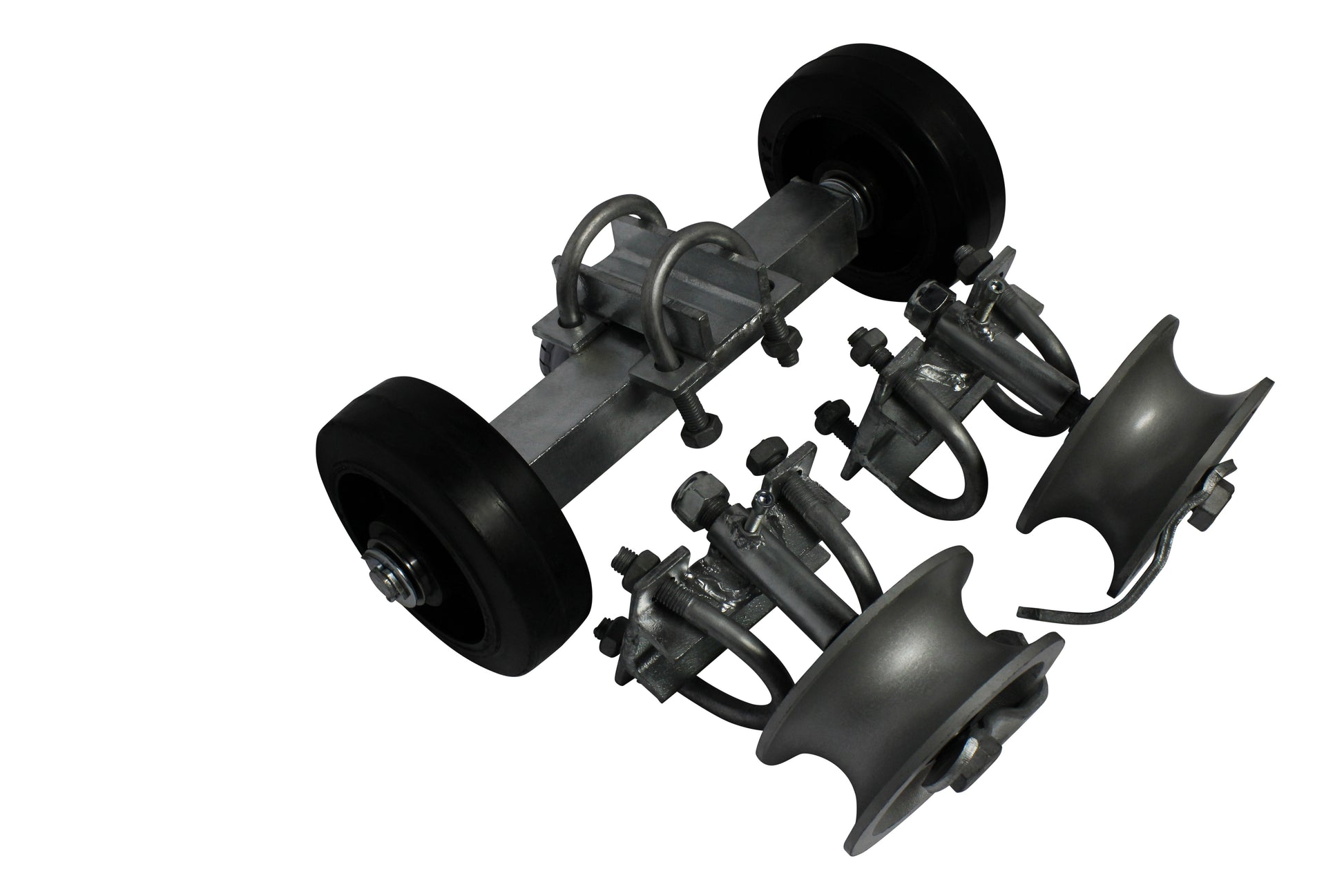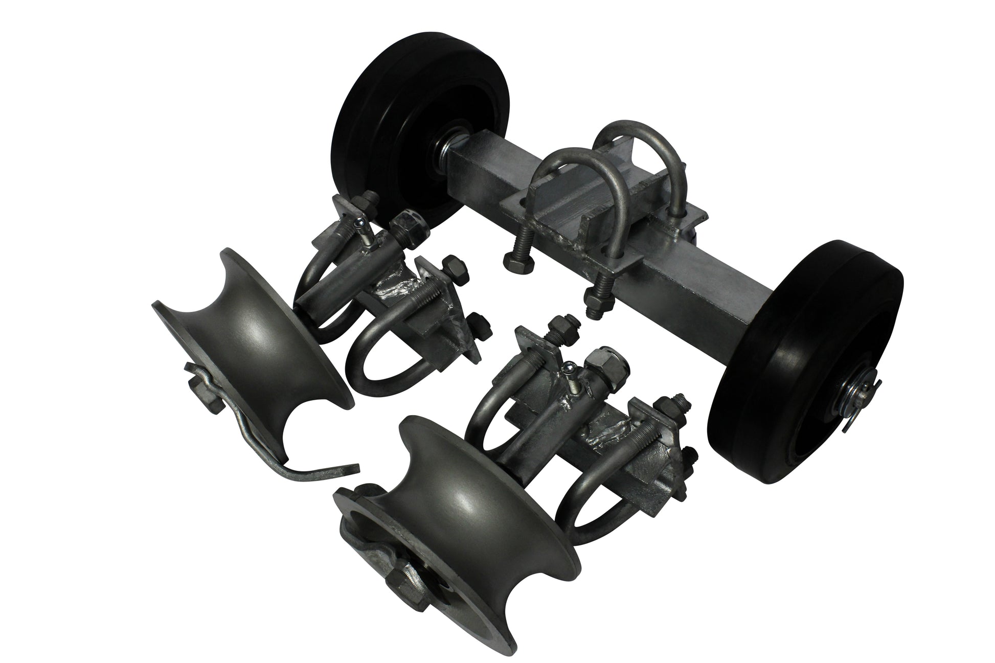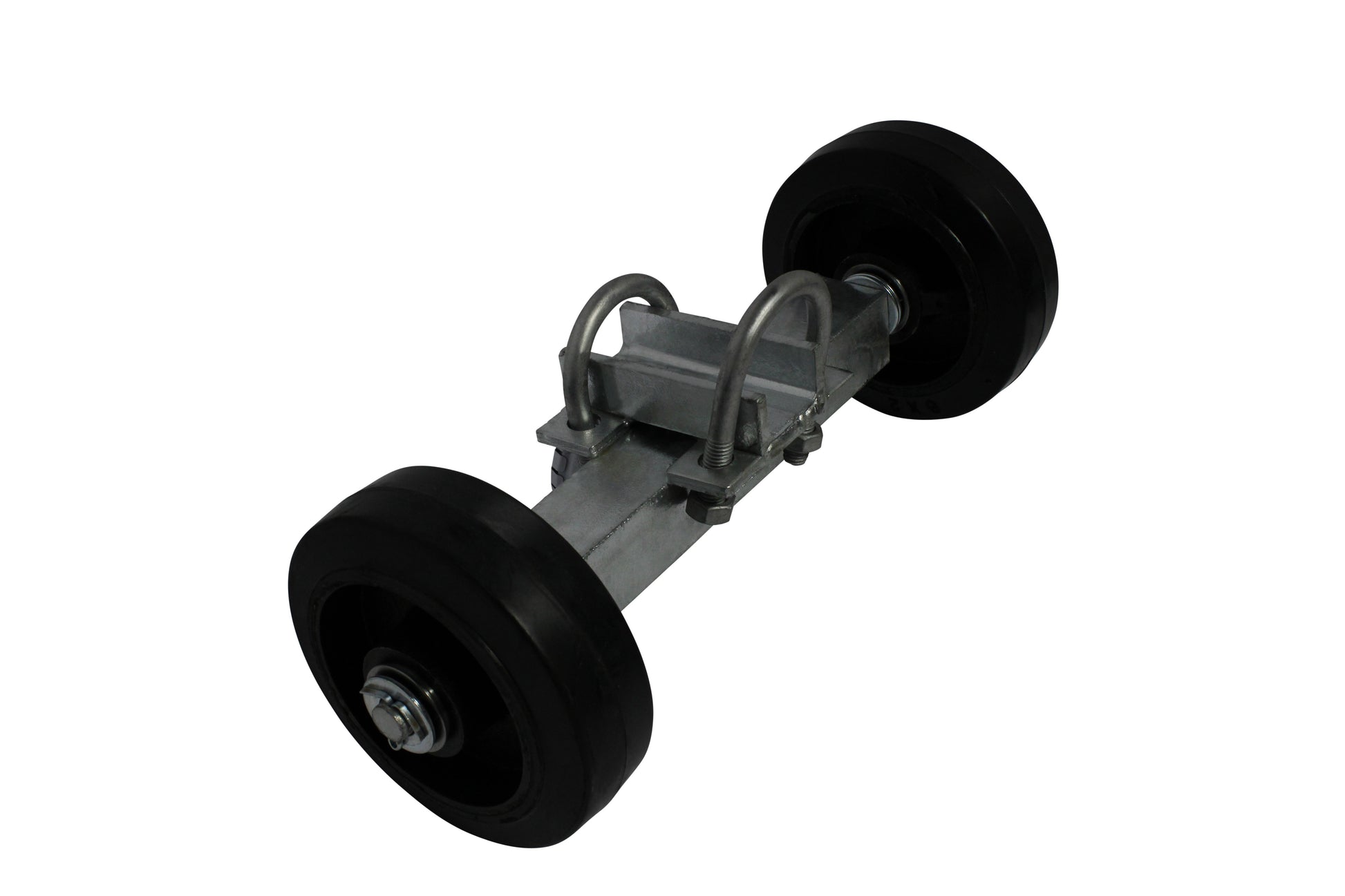 This kit has the hardware you need for your rolling chain link gate. The pipe wheels are machined cast iron for a smooth rolling surface, The precision ball bearings provide low maintenance smooth operation. Two U-bolts provide a positive grip. The front wheel carrier is 16" wide for stability. The wheel carrier's cross piece is hot dip galvanized for extended life. The rubber wheels have precision sealed bearings as well. These two items make a great combination for your chain link slide gate!